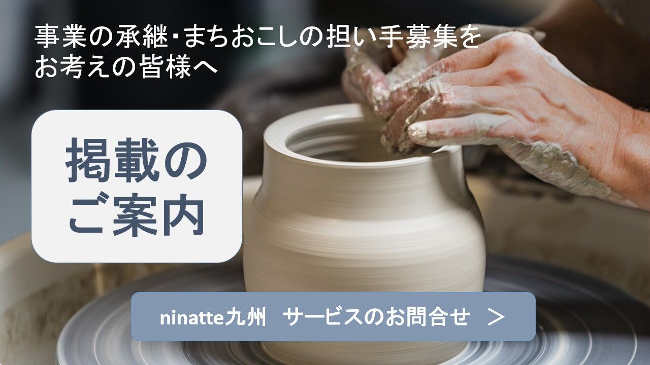 九州の伝統工芸・地域産業・食や医療などくらしを支える事業まで、地域の魅力ある風景を変わらず 支えていく後継者募集と求人サイト。事業の後継者を求めるマッチング支援も行い、培ってきた営みをこれからの未来へ繋ぐサポートも実施。2021.06.23【ninatte九州】伝統工芸産業や中小規模事業・農水産業・職人などの後継者募集サイト/事業引継ぎ・承継工程も支援